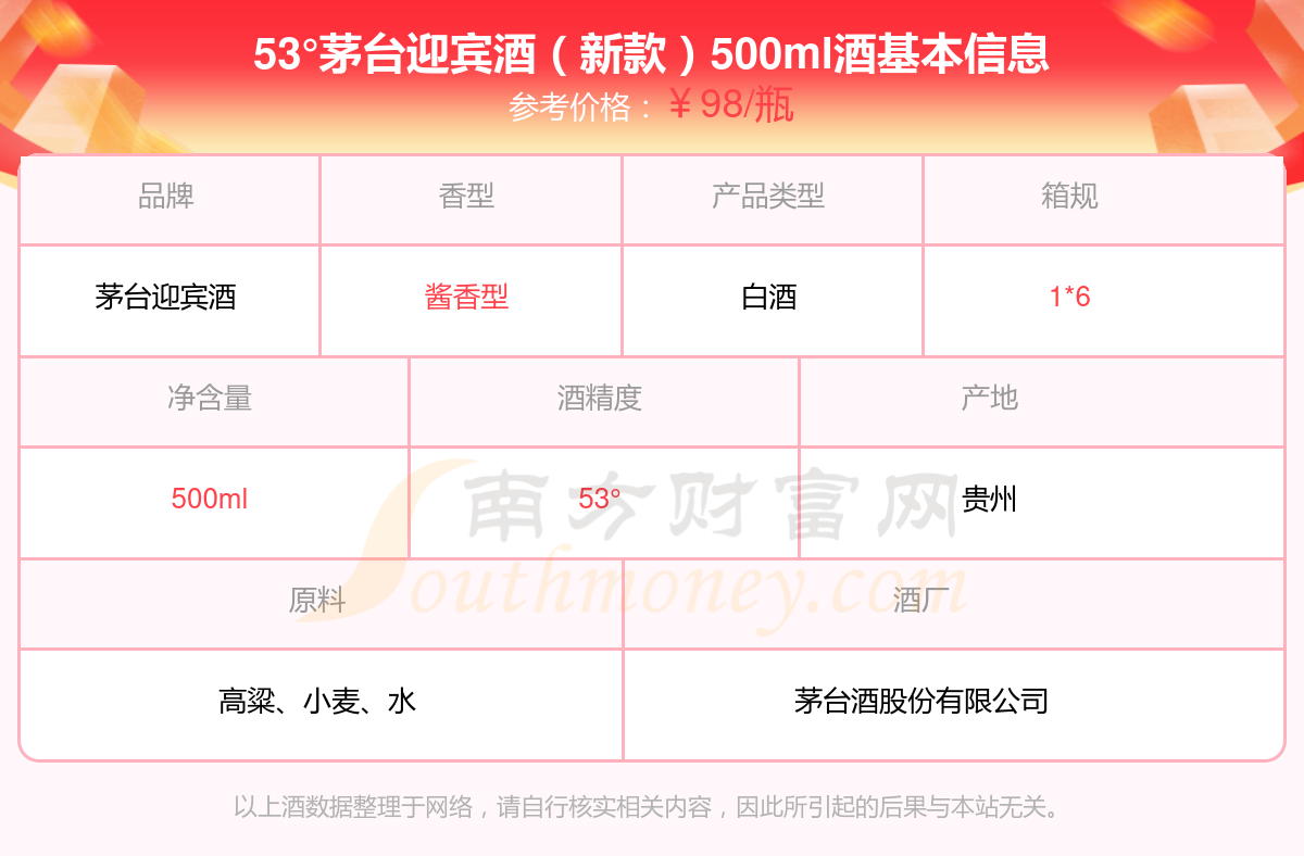 53°茅臺(tái)迎賓酒(新款)500ml基本信息
