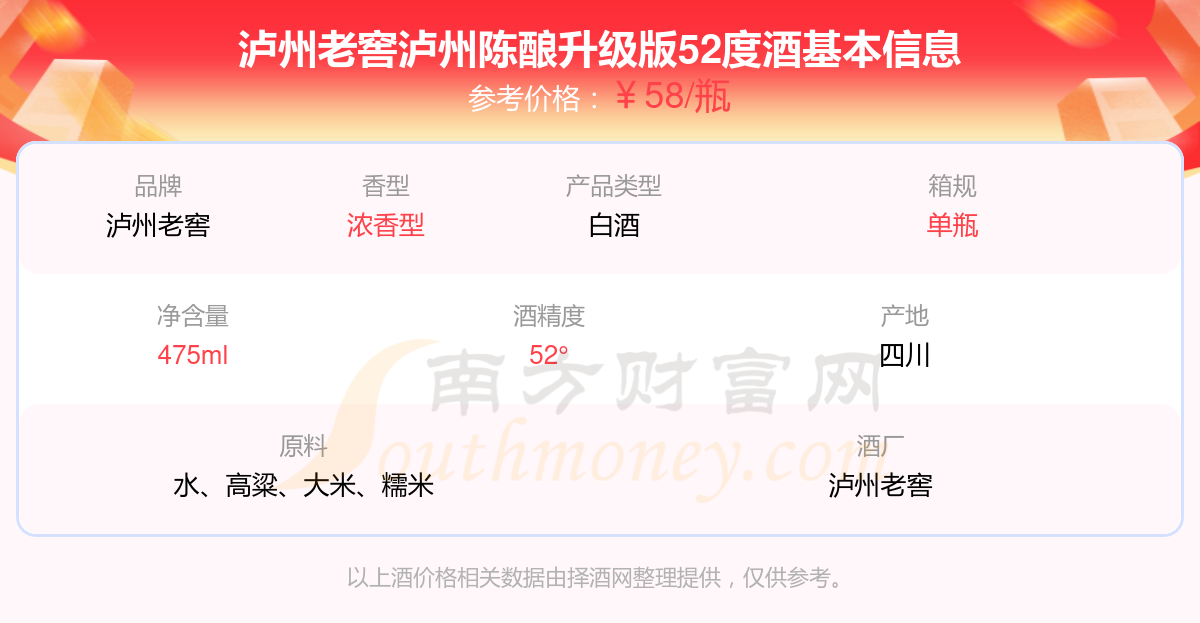 瀘州老窖瀘州陳釀升級版52度基本信息