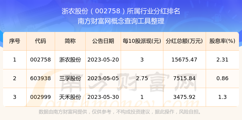 二、浙農(nóng)股份002758行業(yè)分紅排名