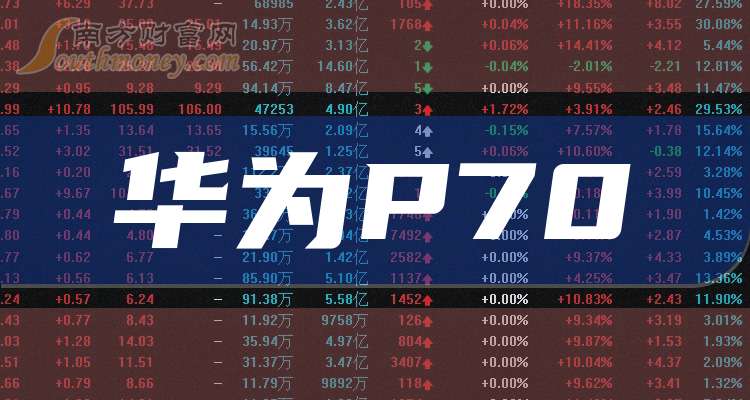 據(jù)南方財富網(wǎng)概念查詢工具數(shù)據(jù)顯示,華為P70概念龍頭有: