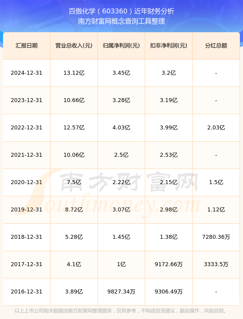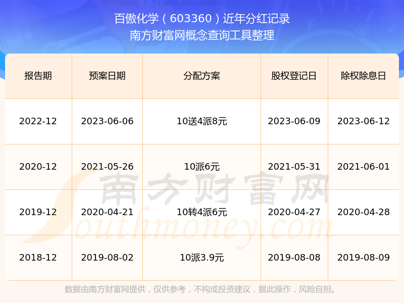 百傲化學(xué)最新一次公布的分紅方案:10送4派8元。