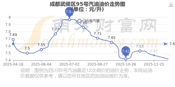 成都武侯區(qū)95號(hào)汽油歷史油價(jià)走勢(shì)圖