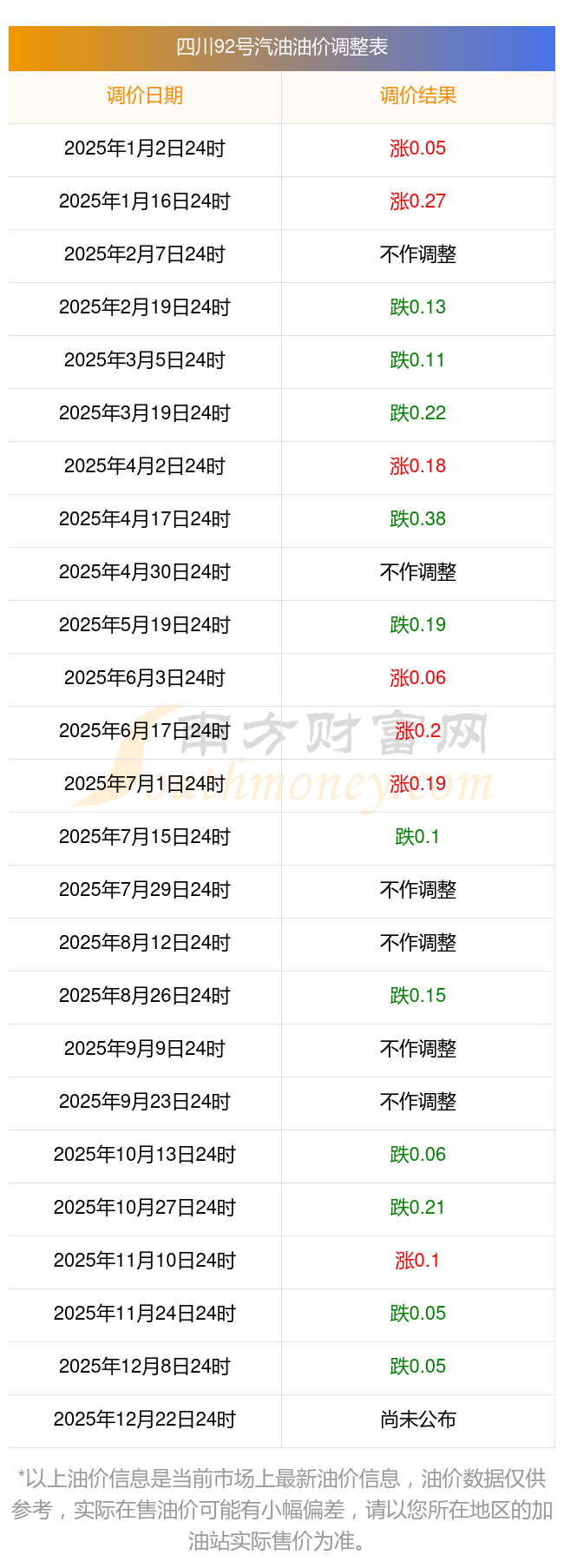 2025年四川最新汽油價(jià)格調(diào)整一覽表