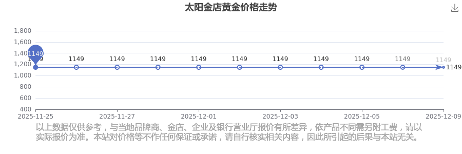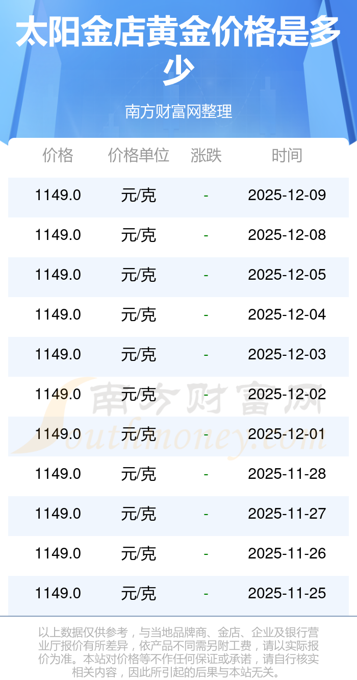 今天黃金價(jià)位怎樣?當(dāng)下一克黃金的價(jià)格為多少?黃金價(jià)格一般是多少錢一克?今日太陽金店黃金價(jià)格最新為1149.0元/克。