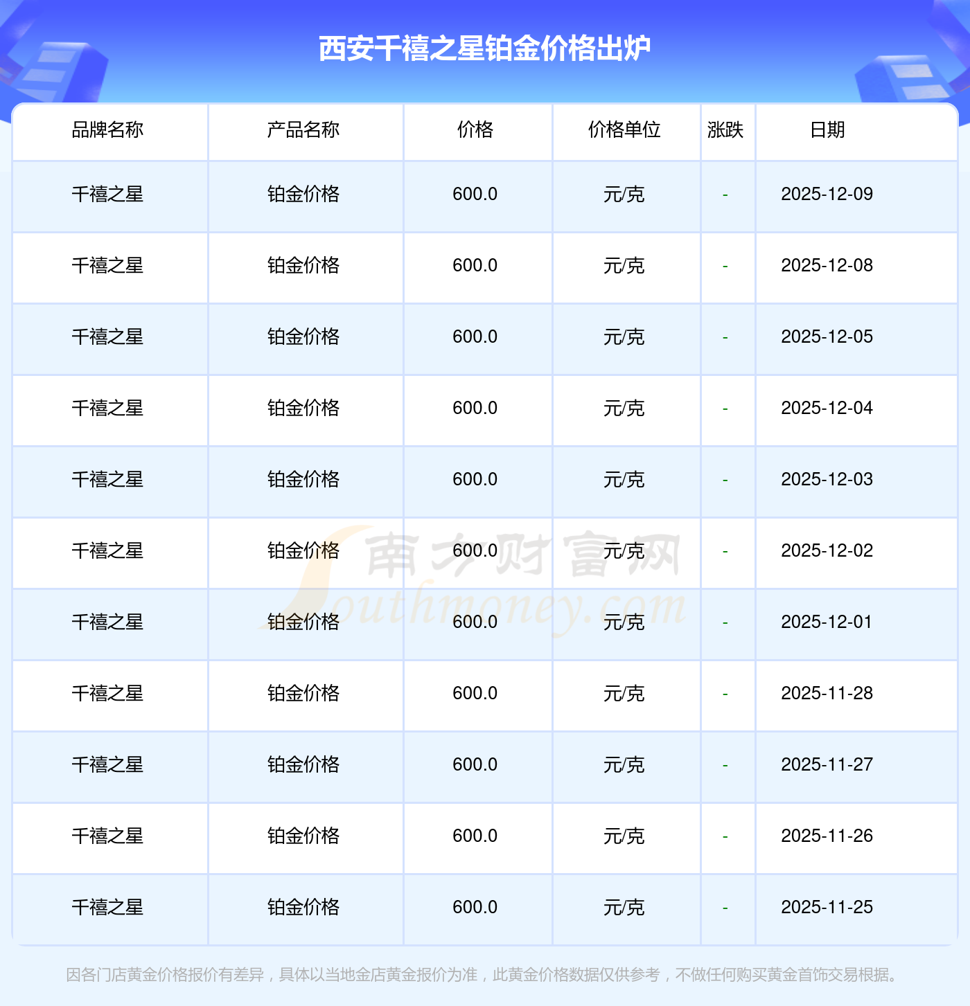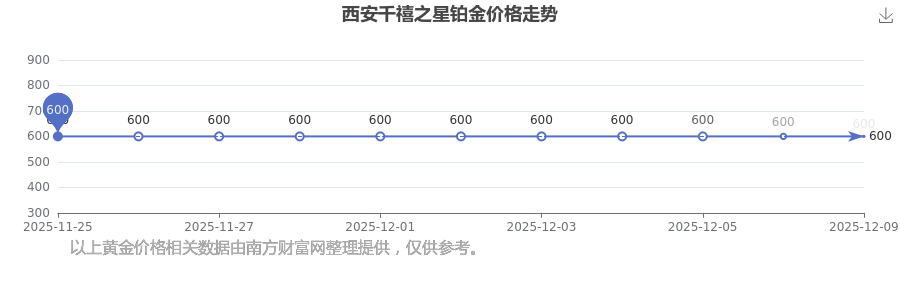 600.0元/克,此乃西安千禧之星于 2025年12月9日鉑金價格的掛牌價格。