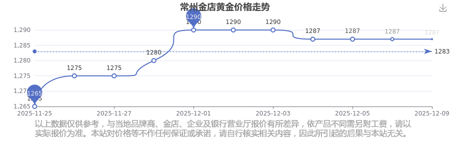 今日(2025年12月9日)常州金店黃金價格為1287.0元/克。