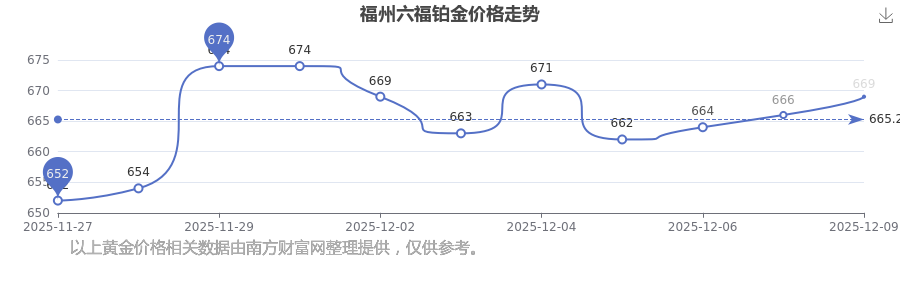 今日(2025年12月9日),669.0元/克是福州六福鉑金價格的價格標(biāo)準(zhǔn)。