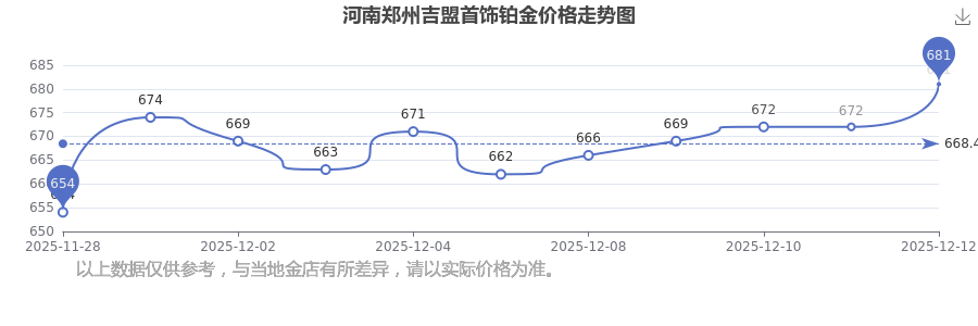 2025年12月13日河南鄭州吉盟首飾鉑金價(jià)格:681.0元/克。