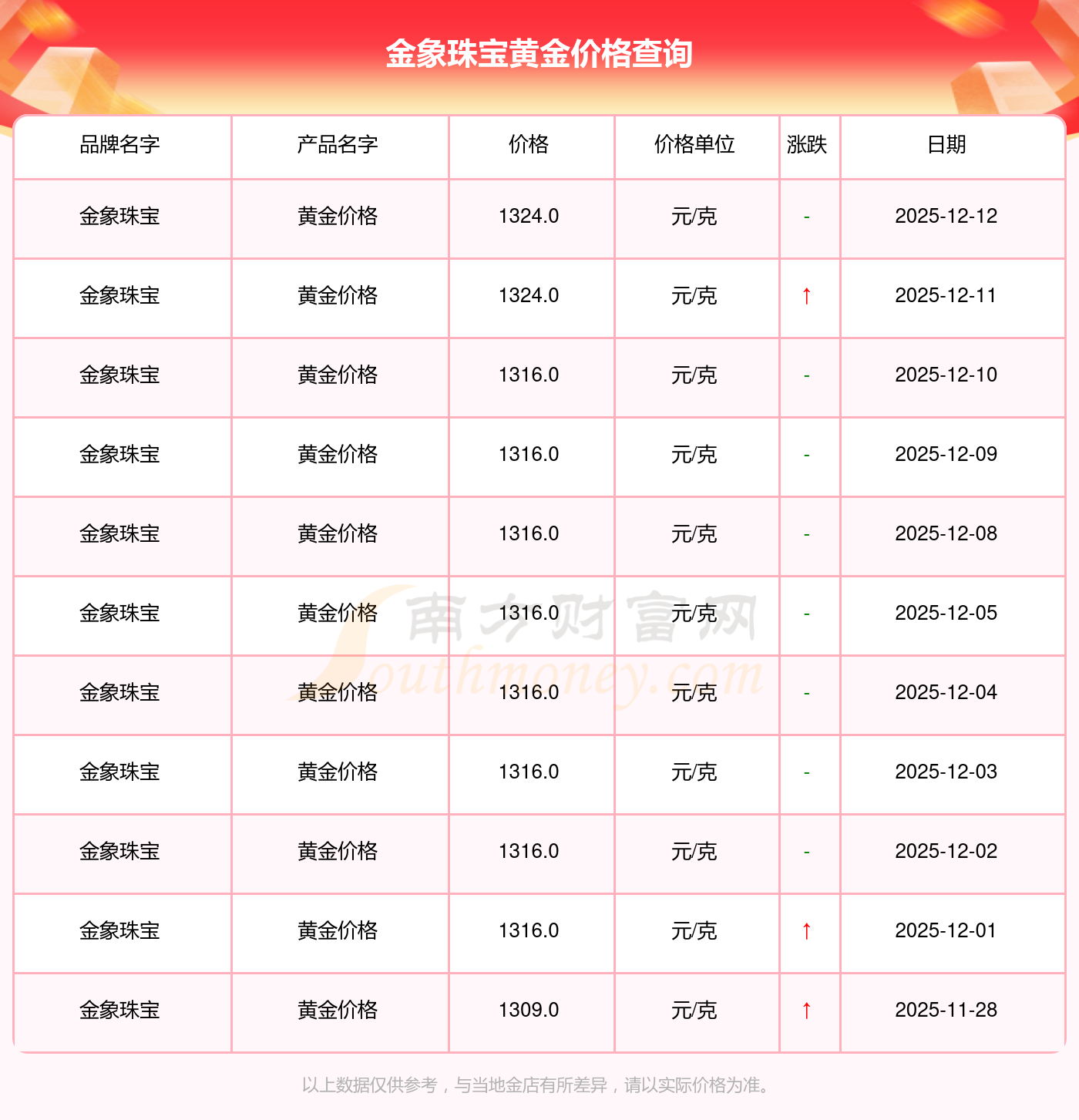 想查詢當(dāng)下黃金價(jià)格,今日黃金一克的價(jià)格是多少呢?黃金每一克的價(jià)格通常來(lái)說(shuō)是多少?據(jù)了解,今日金象珠寶 黃金價(jià)格的最新價(jià)格為1324.0元/克。