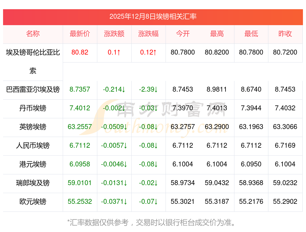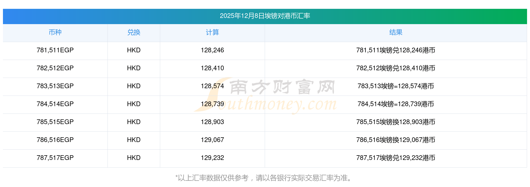 匯率今日價格 今天18埃鎊兌換港幣是多少錢? 2025-12-8