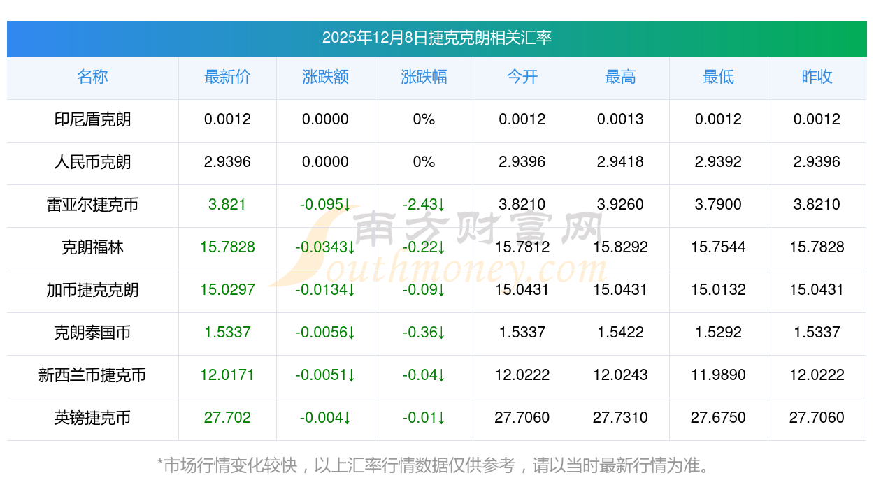 2025年12月8日捷克克朗相關(guān)匯率查詢
