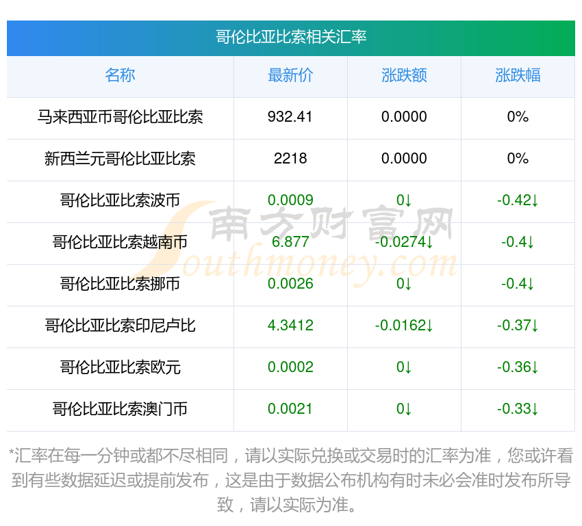 南方財(cái)富網(wǎng)為您提供哥倫比亞比索對(duì)匈牙利福林匯率最新價(jià)格詳情。