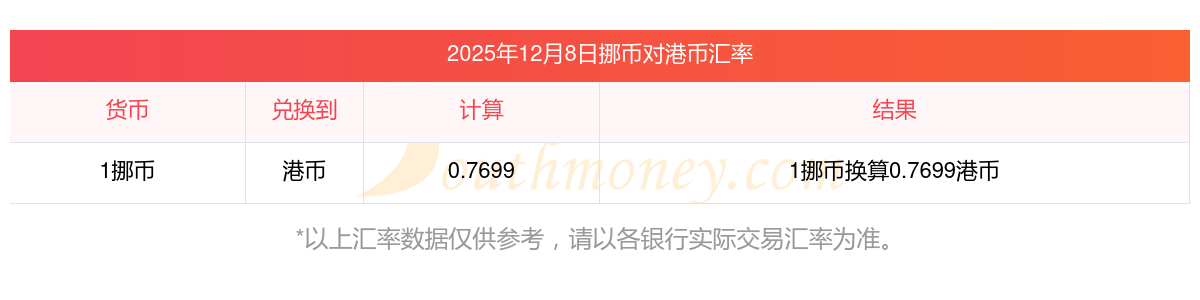 挪幣兌港幣今日匯率價表一覽(6月4日挪幣外匯行情)