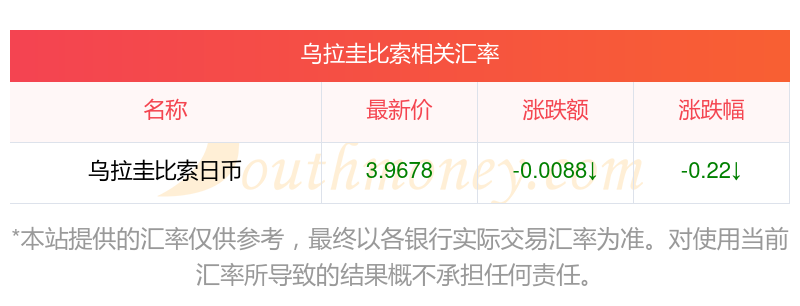 南方財富網為您提供烏拉圭比索對日幣匯率最新價格詳情。
