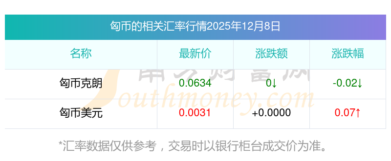 2025年12月8日匈幣相關(guān)匯率查詢