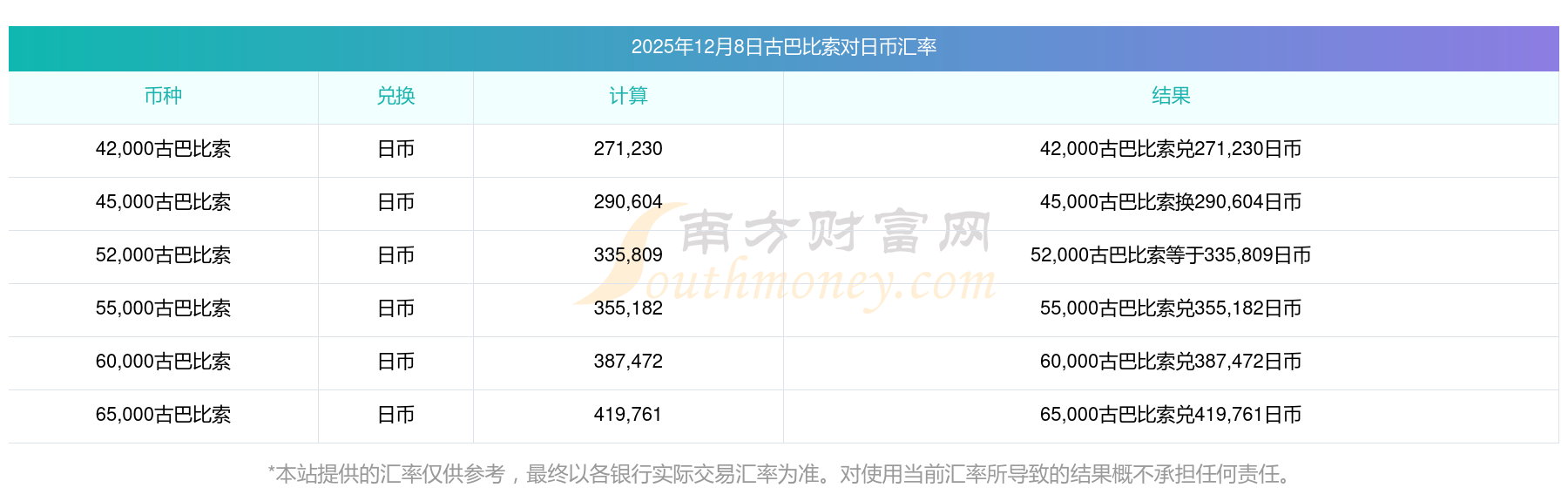 8兌換 | 今天古巴比索兌換為日幣是多少? 12-08