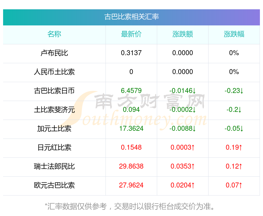 南方財(cái)富網(wǎng)為您提供古巴比索對(duì)日幣匯率最新價(jià)格詳情。