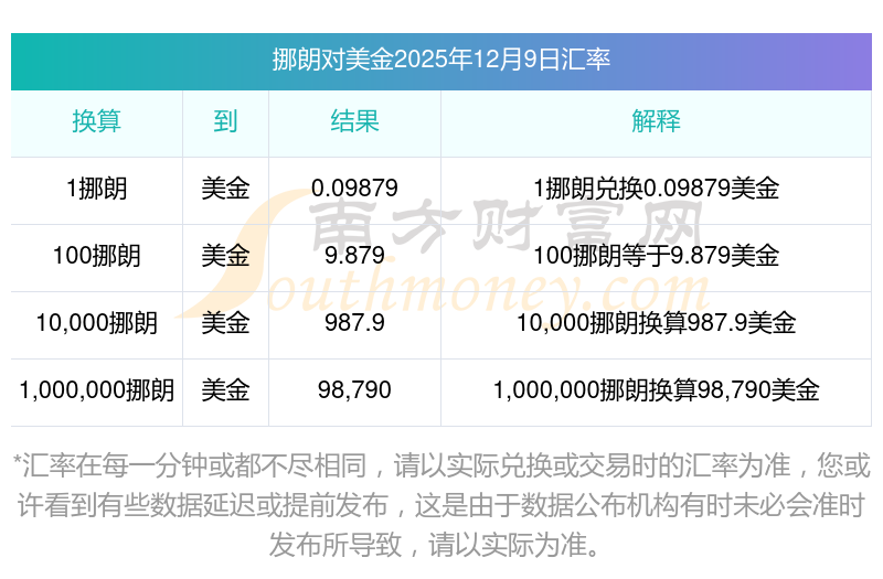 2025年12月9日挪朗與美金的兌換匯率計(jì)算如下: