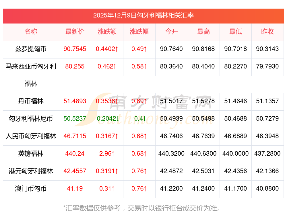 2025年12月9日匈牙利福林相關(guān)匯率查詢
