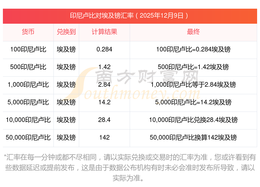 每日匯率查詢_用印尼盧比對埃及鎊匯率表2025-12-9
