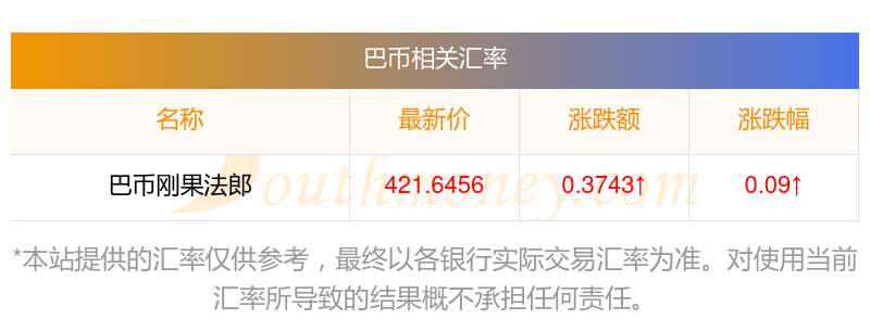 南方財富網(wǎng)為您提供巴幣對剛果法郎匯率最新價格詳情。