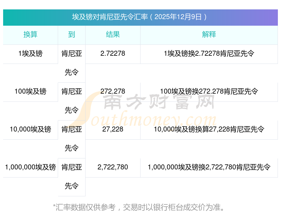 今日埃及鎊兌換肯尼亞先令外匯表2025/12/09