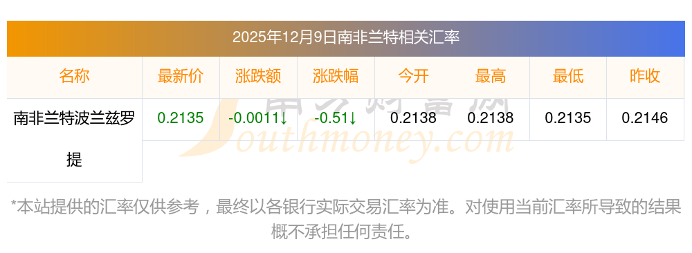 2025年12月9日南非蘭特相關(guān)匯率查詢