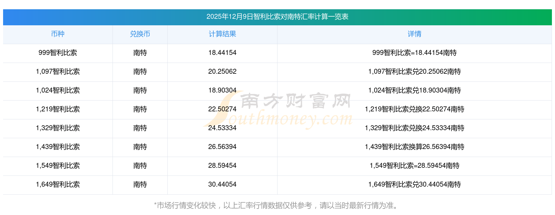 外匯市場行情_智利比索轉(zhuǎn)換南特匯率 2025-12-9