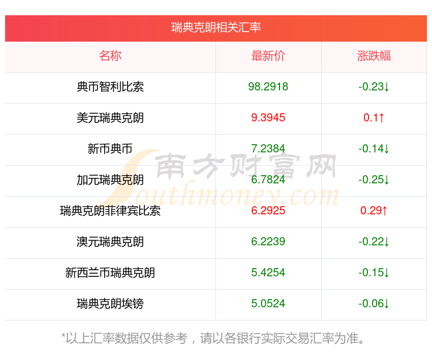 南方財富網(wǎng)為您提供瑞典克朗對丹麥克朗匯率最新價格詳情。