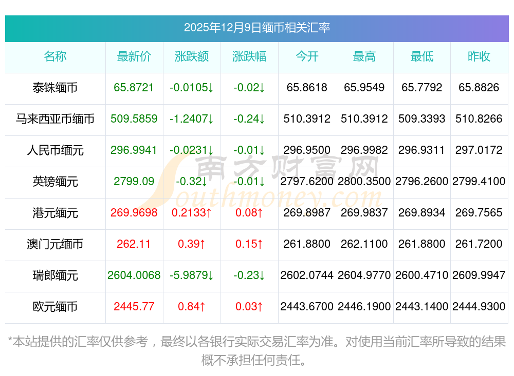 根據(jù)2025年12月9日匯率,緬幣兌換蘭特匯率最新價(jià)0.008116,今開價(jià)0.0081,昨收價(jià)0.0081,最高價(jià)0.0081,最低價(jià)0.0081。