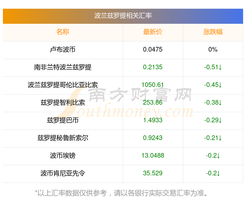 南方財(cái)富網(wǎng)為您提供波蘭茲羅提對(duì)蘭特匯率最新價(jià)格詳情。