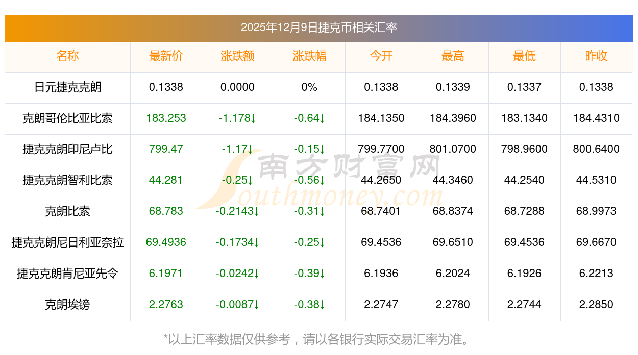 2025年12月9日捷克幣相關(guān)匯率查詢