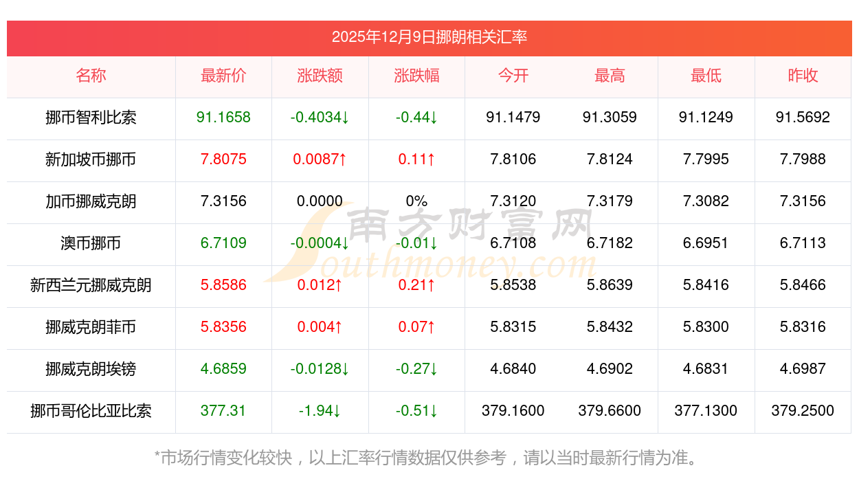 根據(jù)2025年12月9日匯率計(jì)算,挪朗兌換比索匯率最新價(jià)1.804400,今開價(jià)1.8023,昨收價(jià)1.7981,最高價(jià)1.8051,最低價(jià)1.8009。