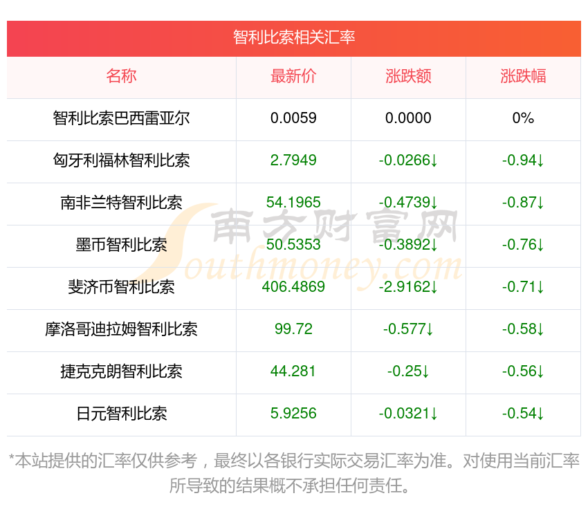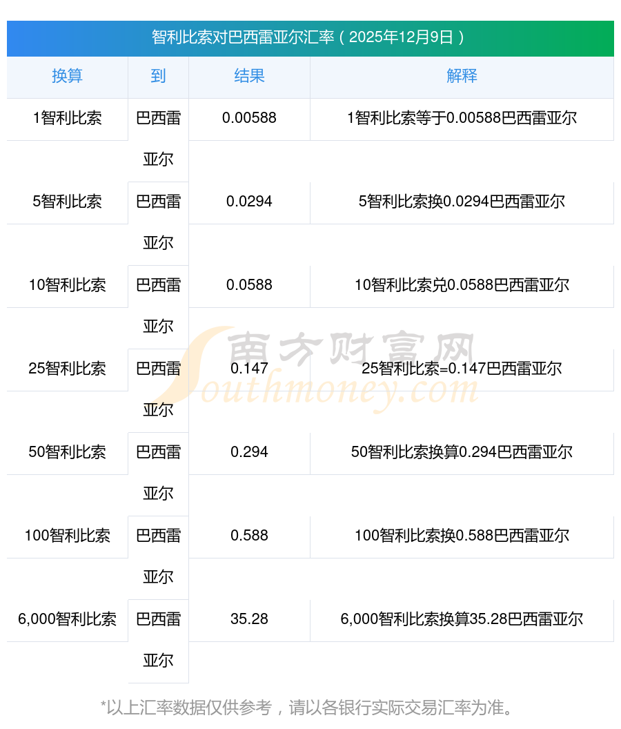 今天巴西雷亞爾匯率查詢_現(xiàn)在智利比索換巴西雷亞爾匯率價(jià)多少?12-09