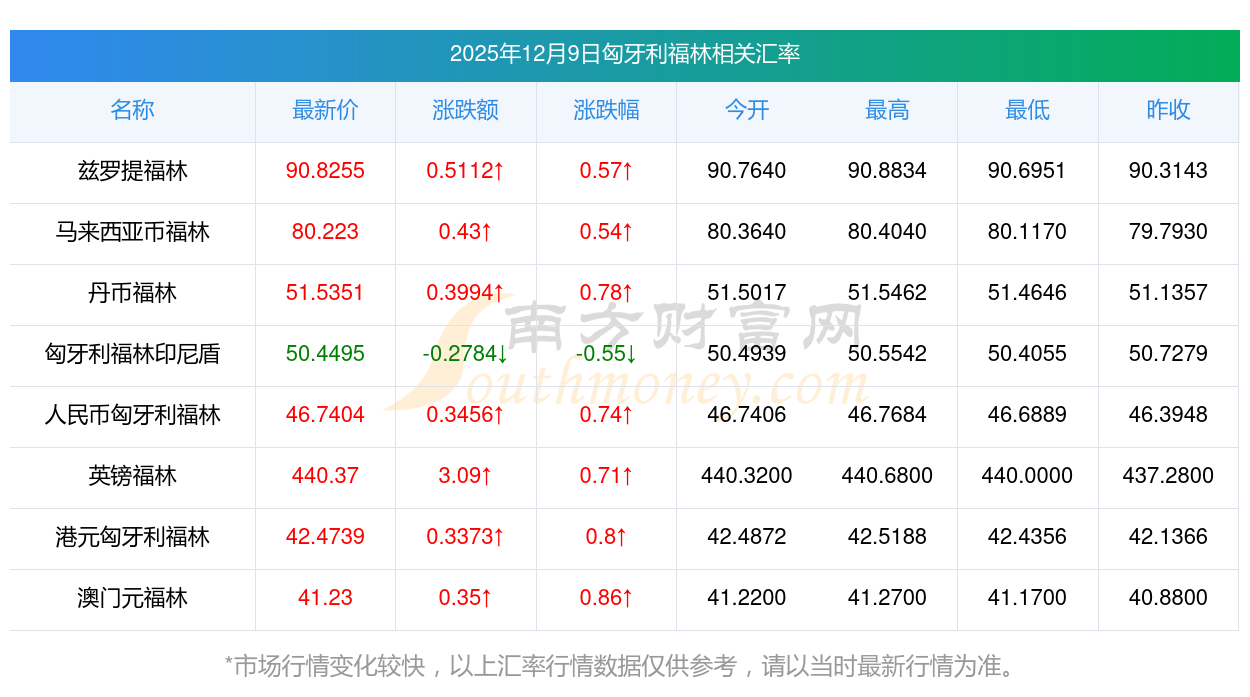 2025年12月9日匈牙利福林相關(guān)匯率查詢