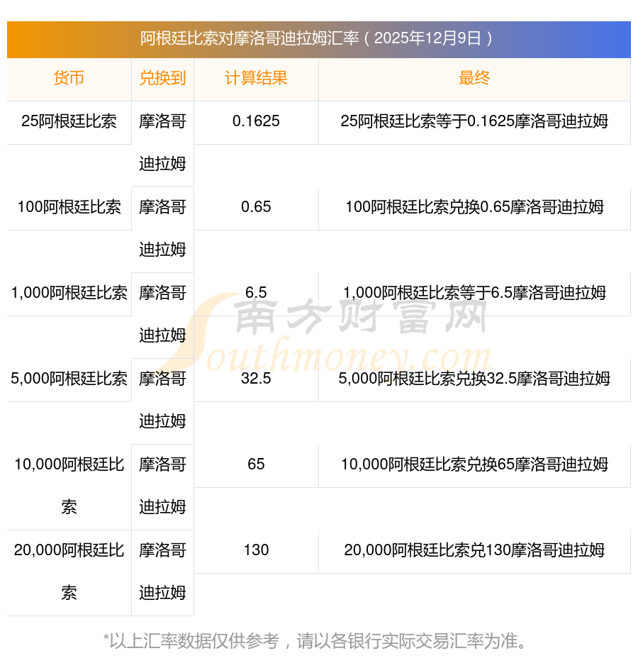 匯率查詢 | 5.5萬(wàn)阿根廷比索轉(zhuǎn)換摩洛哥迪拉姆匯率計(jì)算表? 2025-12-09