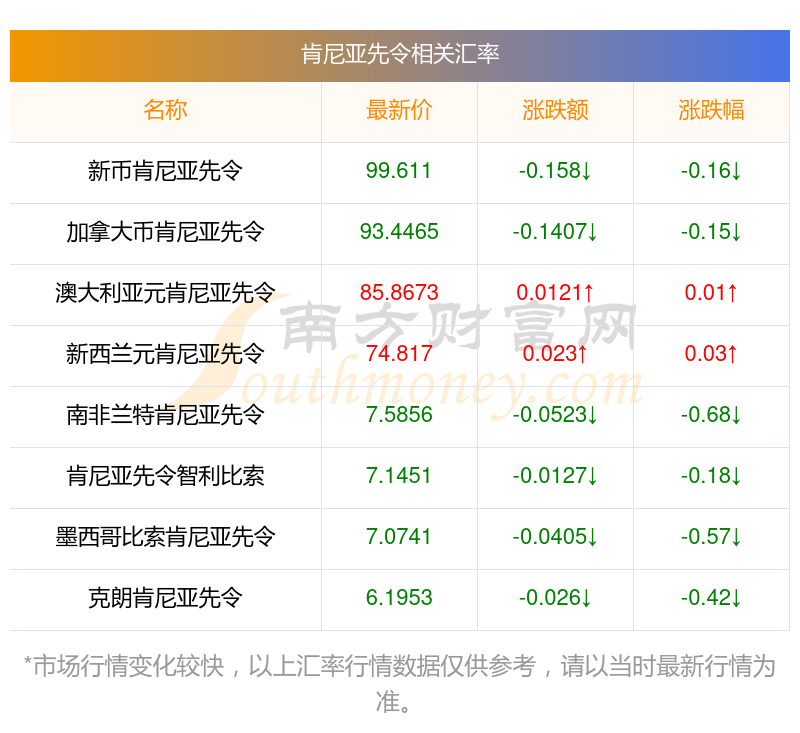 南方財(cái)富網(wǎng)為您提供肯尼亞先令對(duì)哥倫比亞比索匯率最新價(jià)格詳情。