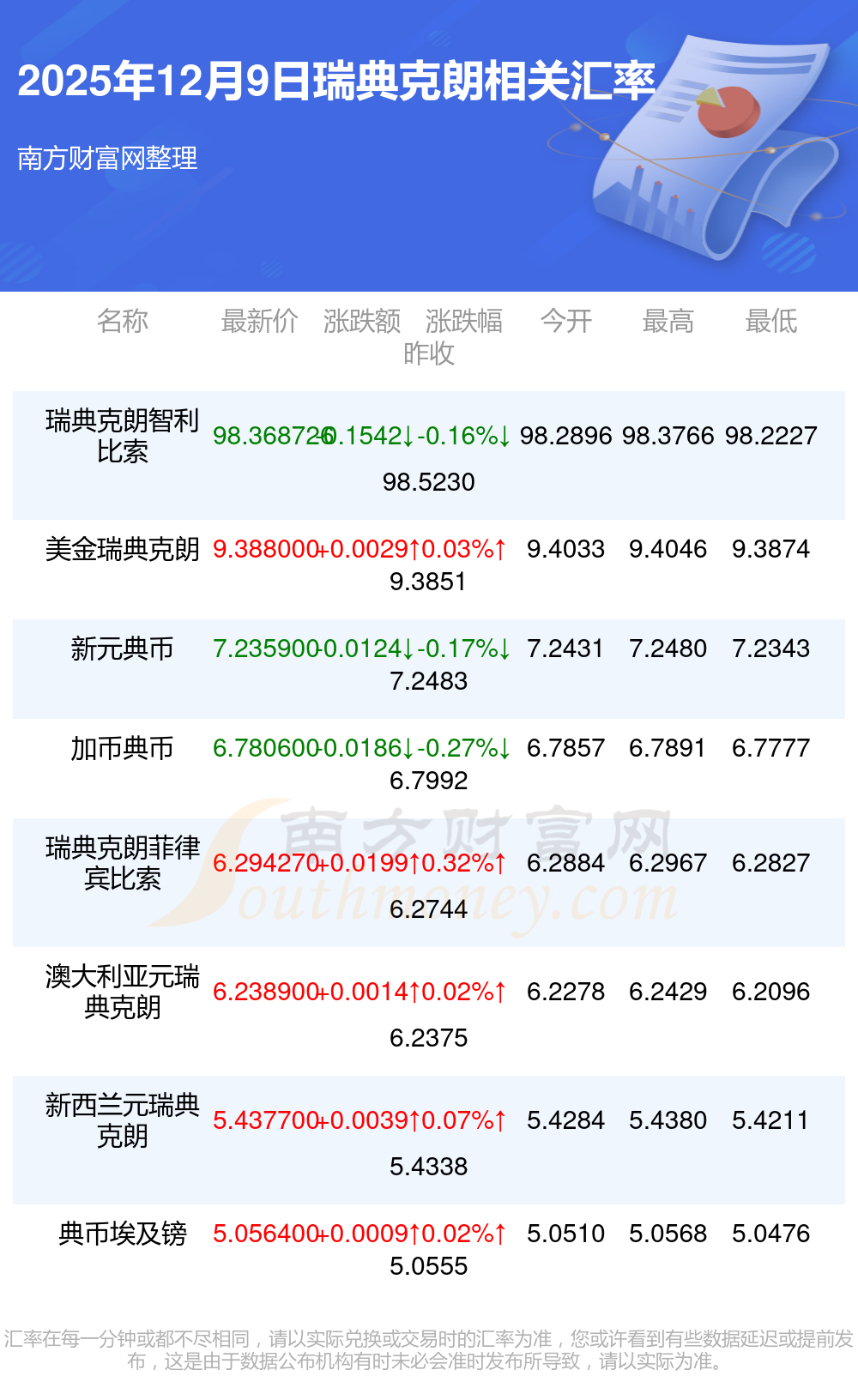 2025年12月9日瑞典克朗相關(guān)匯率查詢