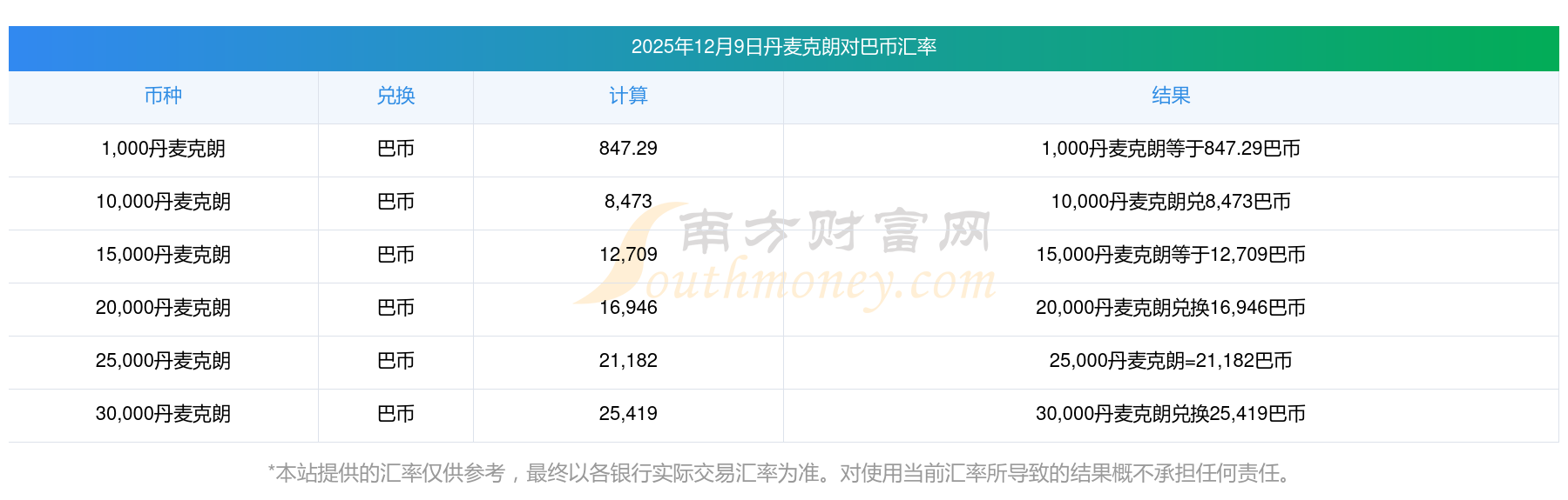 2025年12月9日丹麥克朗與巴幣的兌換匯率計(jì)算如下: