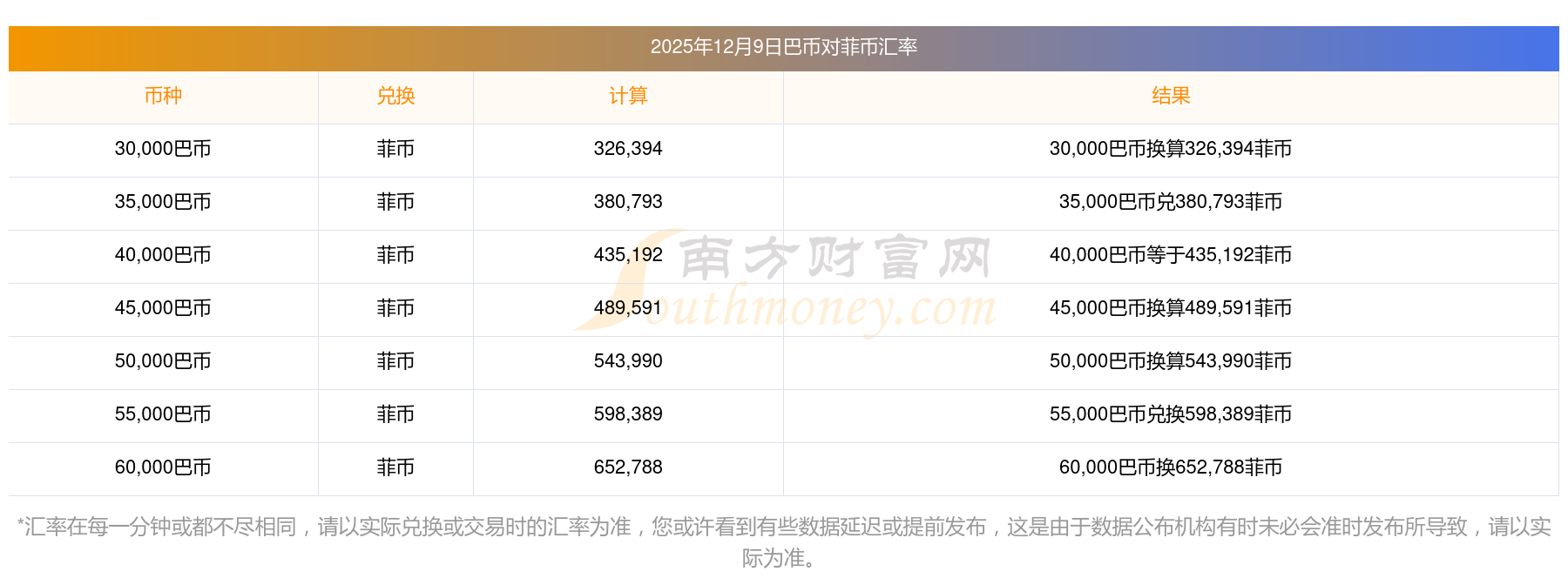18巴幣對菲幣今天匯率一覽2025/12/9