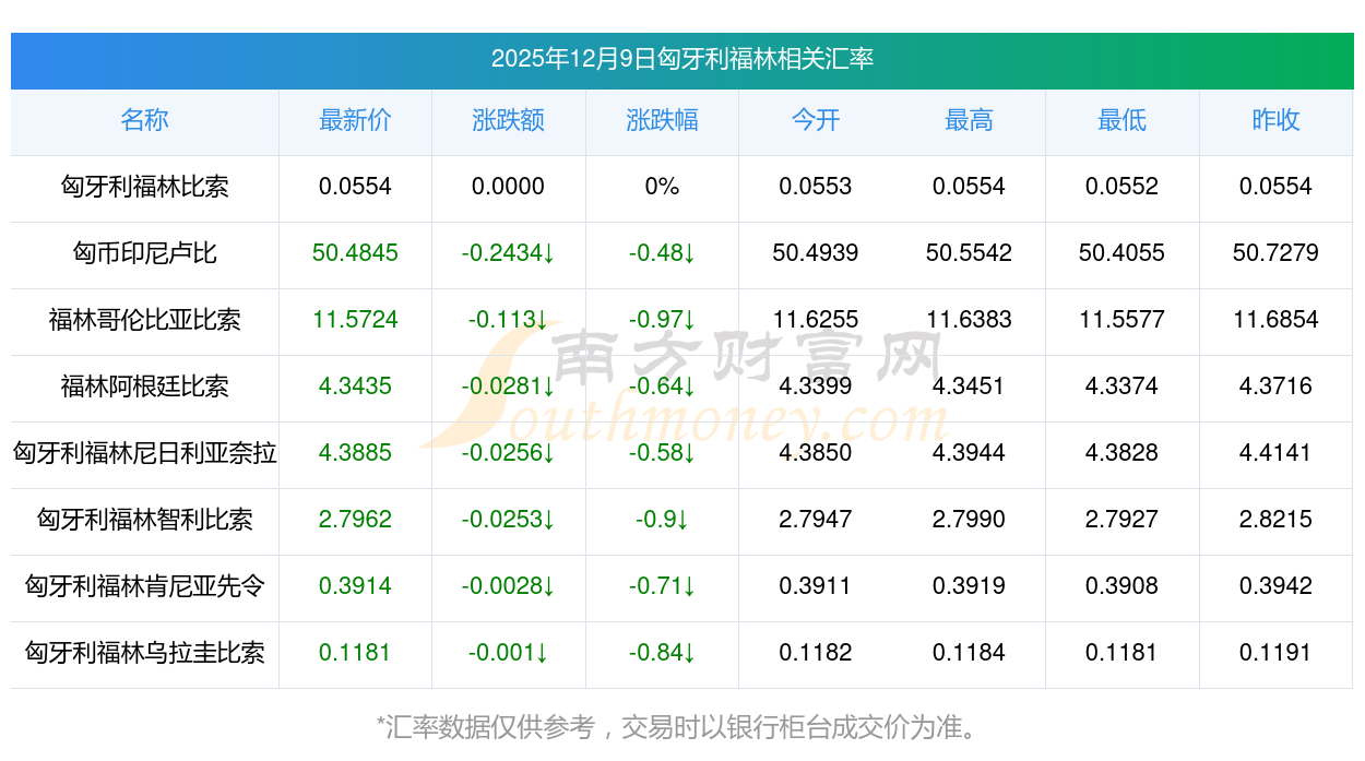 2025年12月9日匈牙利福林相關(guān)匯率查詢