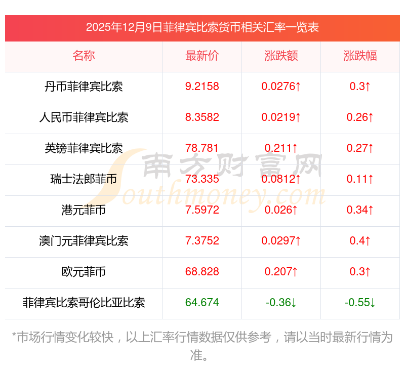 2025年12月9日菲律賓比索相關(guān)匯率查詢