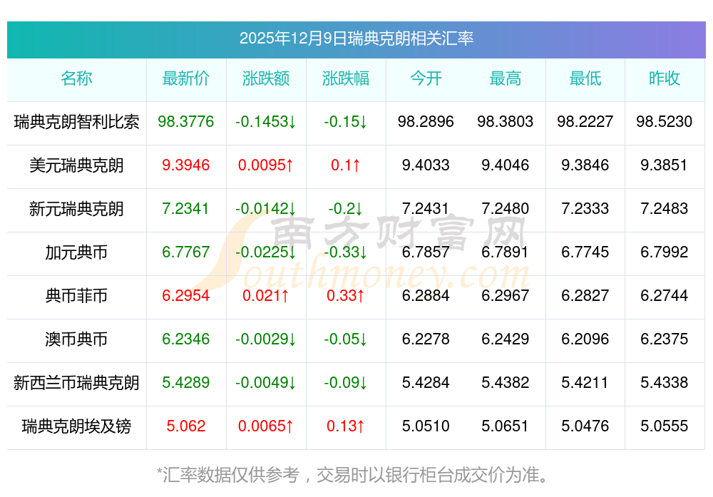 2025年12月9日瑞典克朗相關(guān)匯率查詢