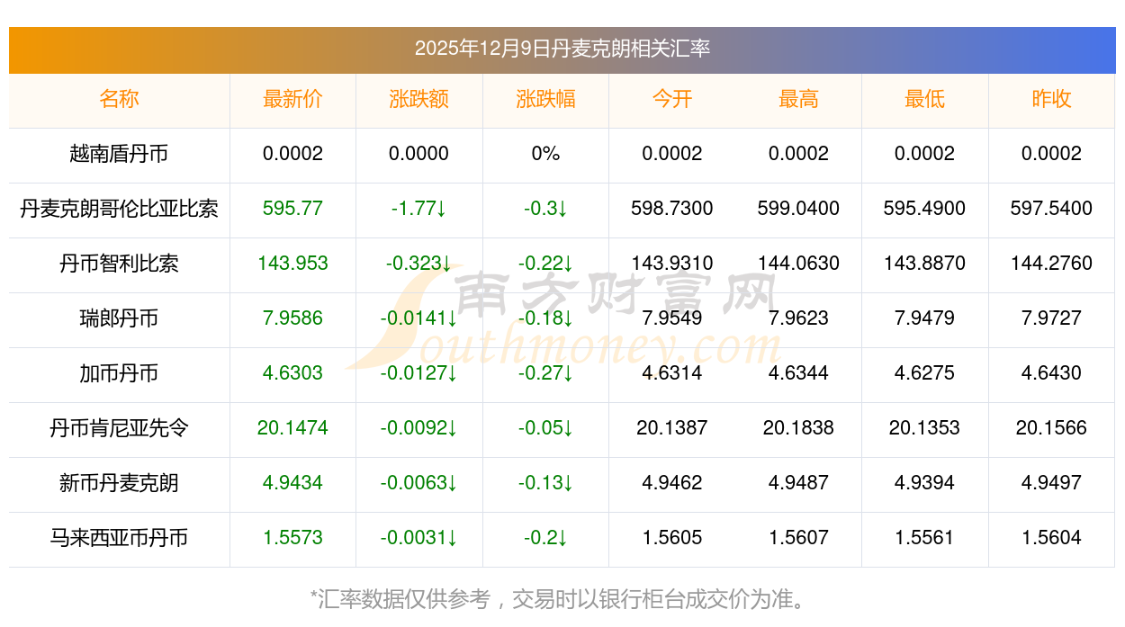 2025年12月9日丹麥克朗相關(guān)匯率查詢