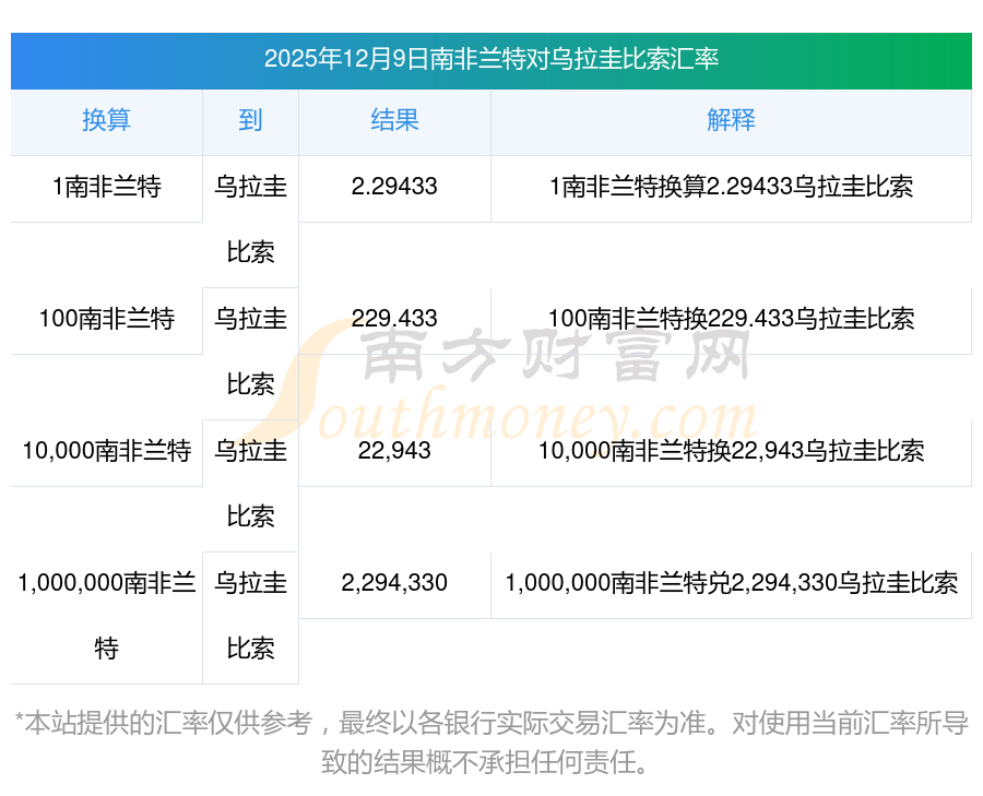 南方財(cái)富網(wǎng)為您提供南非蘭特對(duì)烏拉圭比索匯率最新價(jià)格詳情。