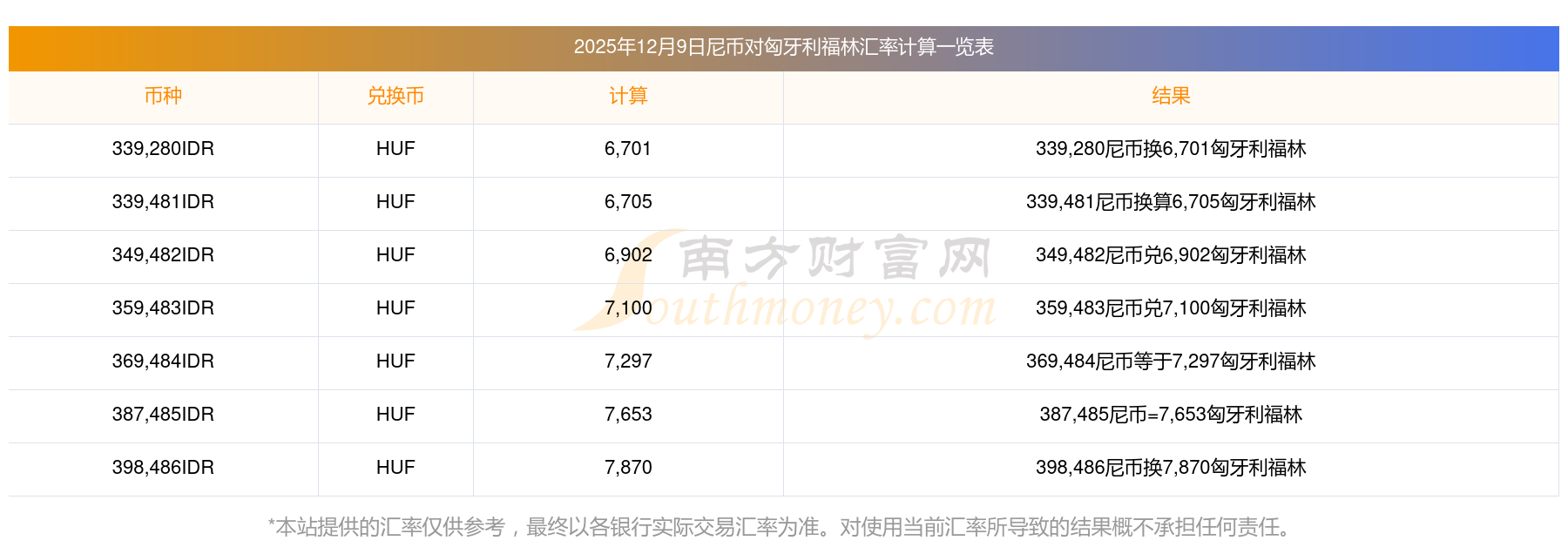 今天匯率更新!2025年12月9日68尼幣兌換匈牙利福林是多少?