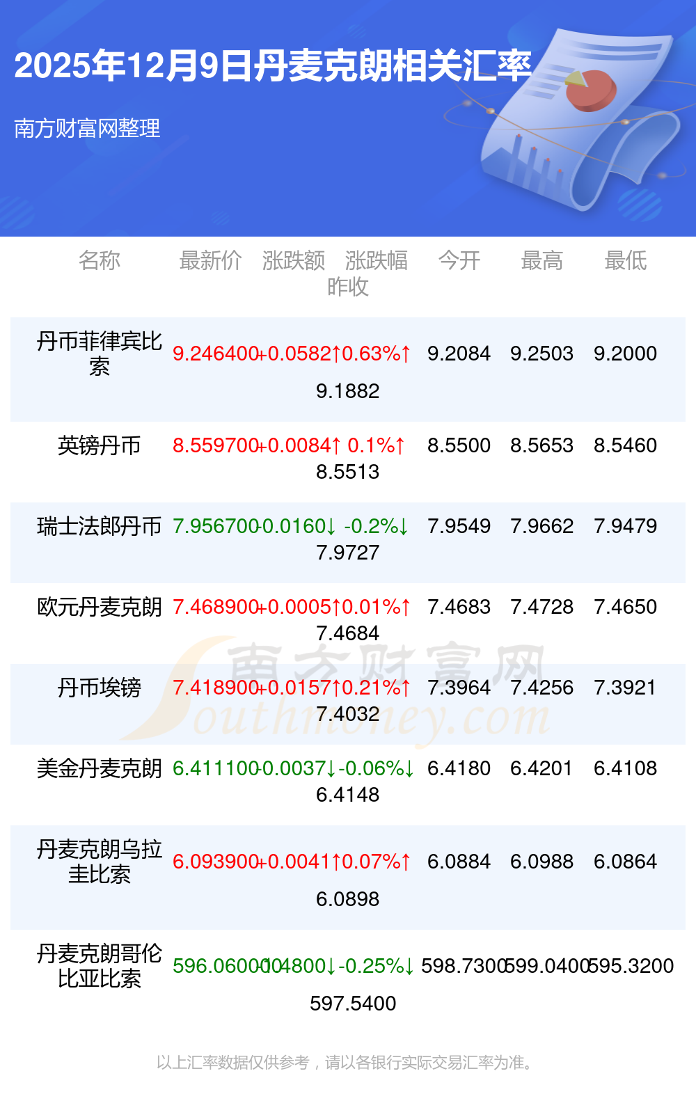 2025年12月9日丹麥克朗相關(guān)匯率查詢