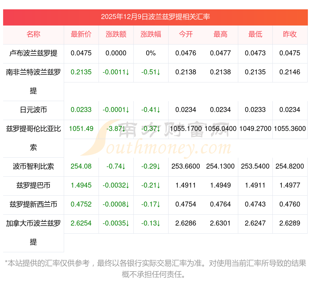 2025年12月9日波蘭茲羅提相關匯率查詢