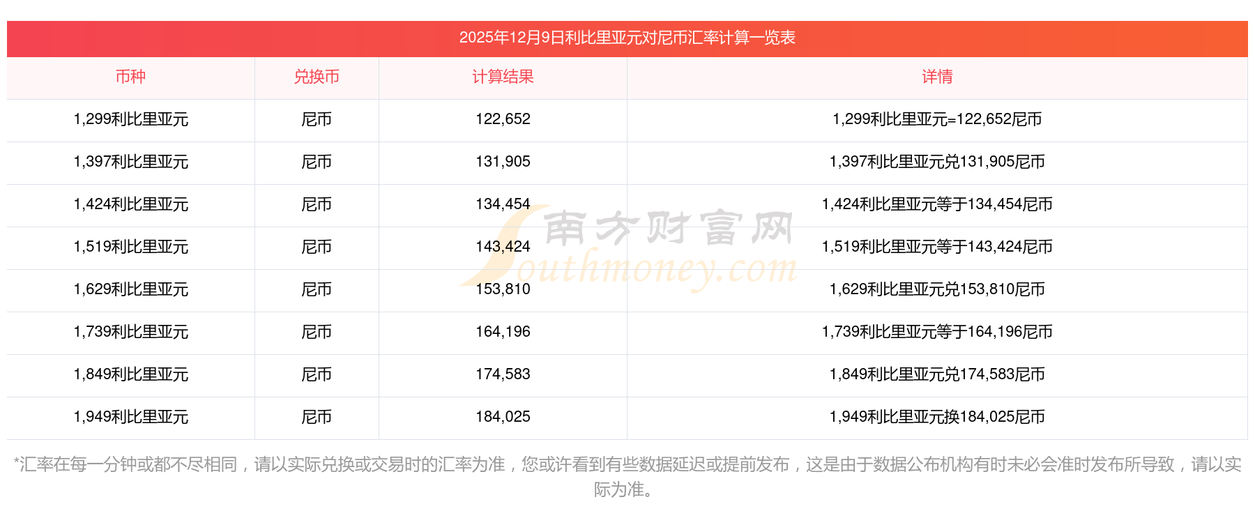 南方財(cái)富網(wǎng)為您提供利比里亞元對(duì)尼幣匯率最新價(jià)格詳情。