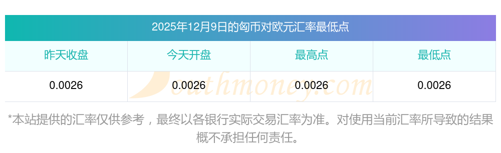 今日100匈幣兌換歐元多少2025年12月9日 _外匯行情